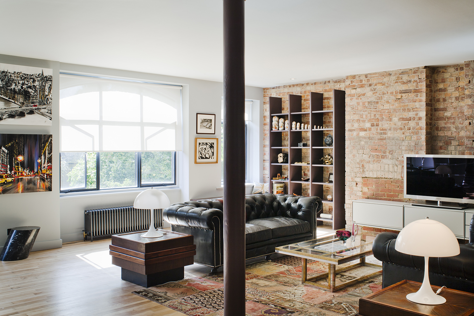- Period feature restoration, vertical iron columns exposing and sealing original factory brick walls